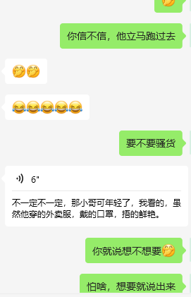 在经历过3P,单约之后,我觉得应该进一步尝试更刺激的玩法,所以趁我值班的时候,跟老婆沟通了一下,我给她点个外卖,让她全裸取外卖,但是老婆不同意,最后说穿着情趣内衣取,因为我们这边天气已经很冷了,所以外面又套了一个衬衣,提前让老婆把手机固定好打开录制视频,我特意交代她,如果是个帅哥,就把门开大一点,动作大一点,把衬衣掀开给小哥看。没想到真是个小帅哥,可惜取之前老婆没做好心理建设,小哥走后老婆后悔了,后悔没鼓足勇气把小帅哥留下,然后我就用某团给小帅哥发信息,想加上小哥的微信,结果小哥估计是怕被套路,所以直到现在都没要到小哥的微信。