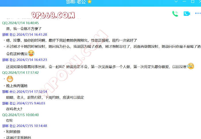 他偷偷拿老婆的手机加了我微信,过了一段时间给她打招呼,就说是可能以前玩探探的时候加的(他知道老婆以前聊过探探),她也没怀疑,慢慢聊的多了,和她挺有共同语言的。不过有一段时间不怎么回我信息了。后来我借口发现媳妇出轨(假的),跟她进入了性话题。开始给她看3p的视频,结果她喜欢看多人的,还幻想被强奸,真是极品哦。后来还跟她聊起了淫妻的话题,他老公也经常跟她说找男人草她。